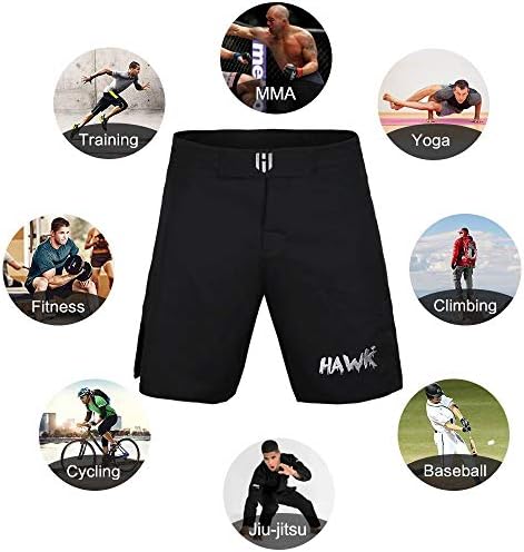 - High-tech embriodery hawk mma shorts logo on the front leg.